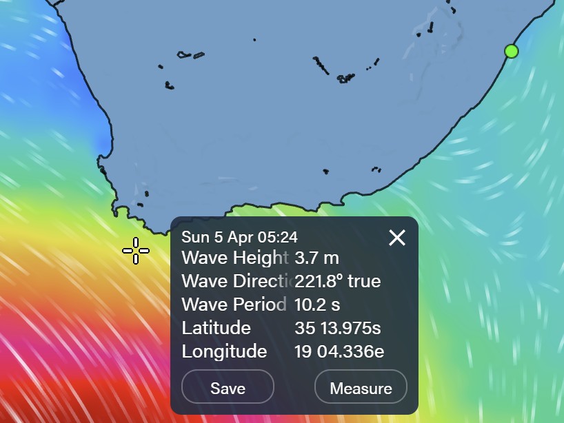 Vattnen söder om Sydafrika är ökända och det finns flera rapporter om ”monstervågor”. ”The Roaring Forties” är inte långt borta, den sydliga västvindzonen mellan latitud 40º och 50º som har ”fri fart” runt hela jorden, söder om Afrika, såväl som Australien och Sydamerika. The Roaring Forties kraftiga vindar från väster gav segelfartygen extrema farter på traden till och från Australien för frakt av t.ex. vete.